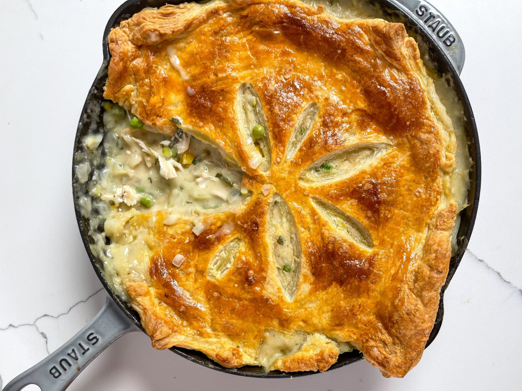 Place pot pie on top rack and bake until the crust is golden and the gravy is bubbling (about 50 minutes)