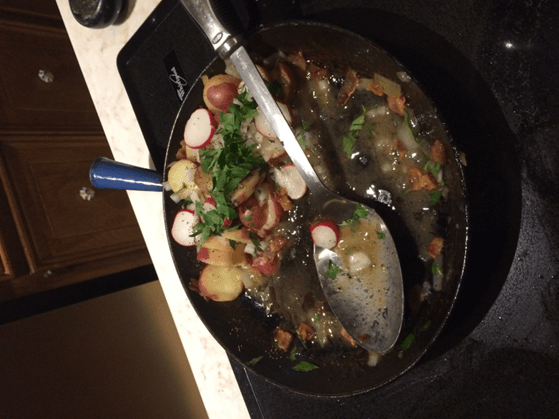 Add 1/4C minced onion, parsley, celery seeds, and radishes