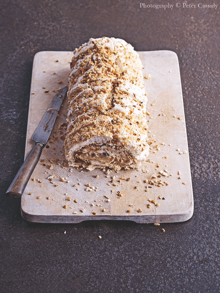 Sprinkle 75g chopped hazelnuts over the meringue