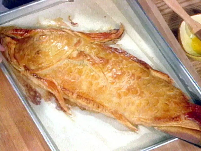 Using 2 long spatulas, transfer the “fish” to a serving platter.