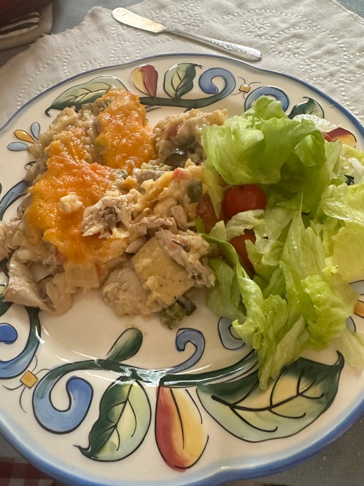 Pour mixture over 2 layers of chicken and chips in an 8 x 8 casserole.
