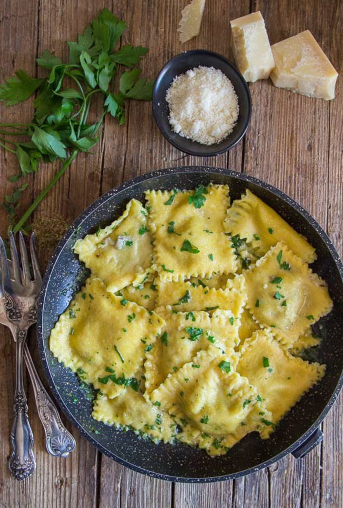 Place the sealed raviolis on a heavily floured cookie sheet and let dry for an hour