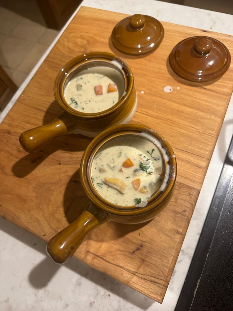 Blend remaining 1-1/2C milk with flour, stir into chowder, cook, stirring until just at the boil
