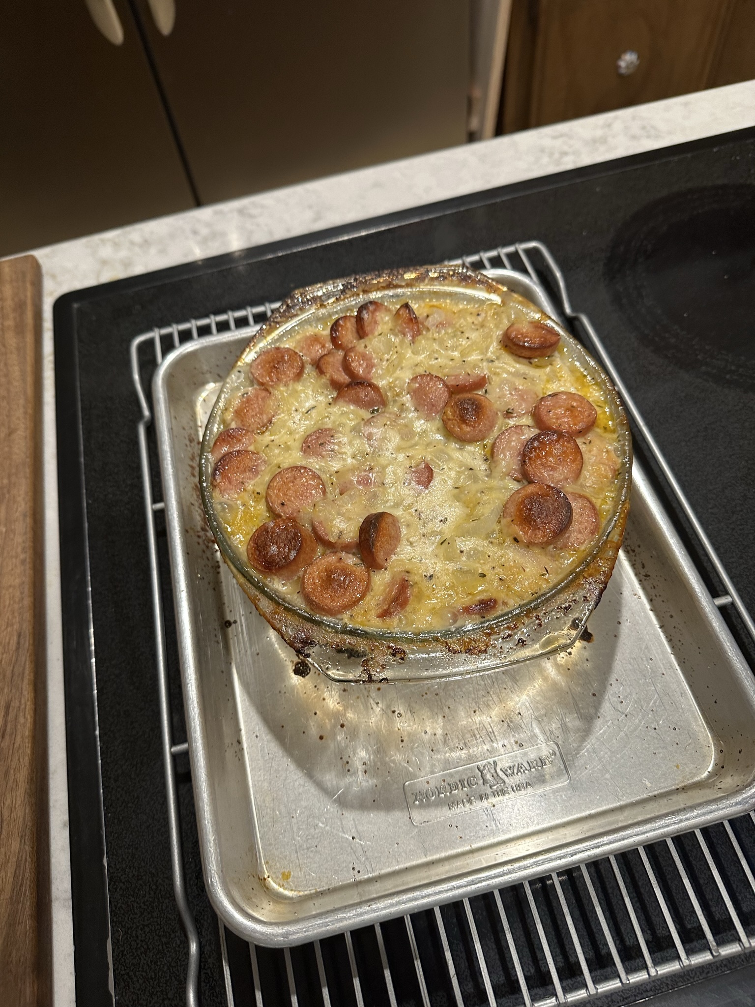 Layer half of the potatoes in buttered 1-3/4qt casserole