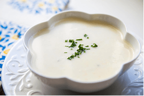Add 1/2C cream and season with salt. Over salt slightly because salt loses flavor in a cold dish.