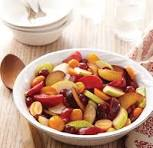 Toss the plums, pears, grapes, and kumquats with the Riesling syrup