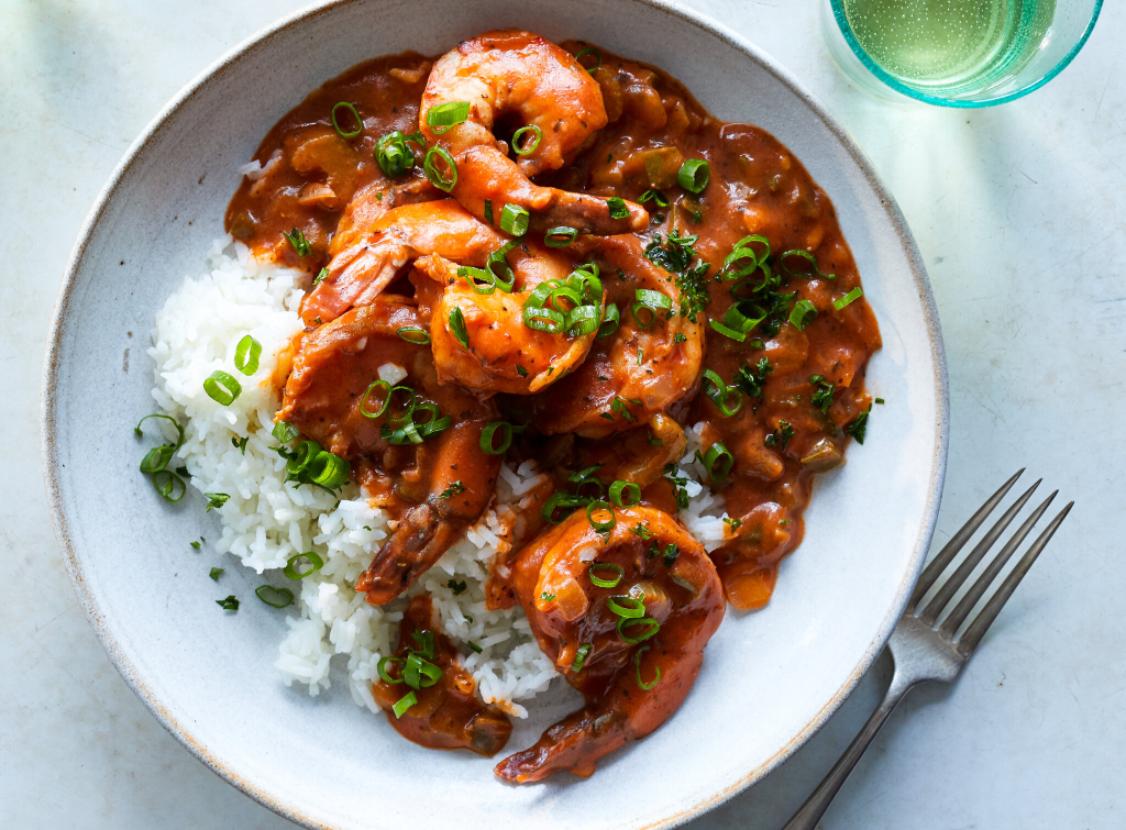 Add the tomatoes and their juice, the bay leaf, and shrimp stock, blending well