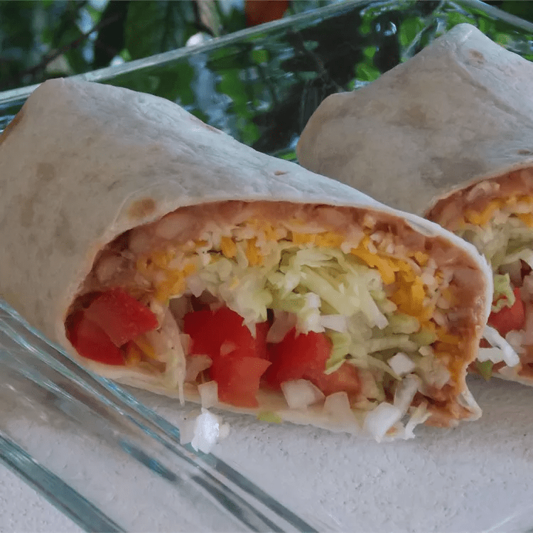 Vegie Burrito ½ cup refried beans 1 large flour tortilla 2 romaine lettuce leaves ½ avocado, peeled and sliced ¼ cup fresh pico de gallo or Pace picante Share this: Click to print (Opens in new window) Print Click to share on Facebook (Opens in new window) Facebook Like Loading...